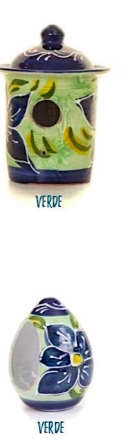 Handmade in Spain from fine clay, finished with rope hanger long enough to knot or loop as desired.