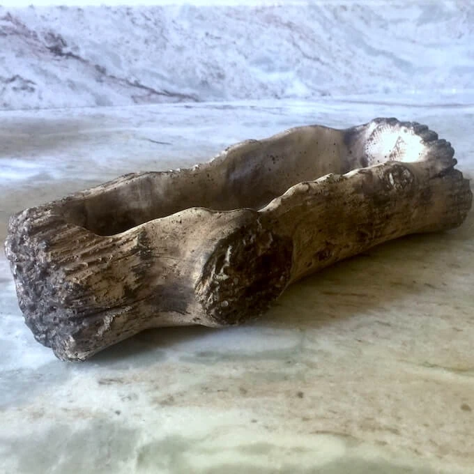 Detailed relief texture with varied tones imitate the real thing. Ceramic table top planter holds succulents, candy, keys or catch-all.