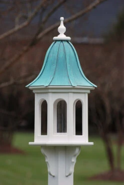 Classic copper roof bird feeder is a wonderful addition to the garden or landscape, attracts birds with timeless style. Complete with vinyl mounting collar and attached decorative brackets – fits on your 4 x 4 post.